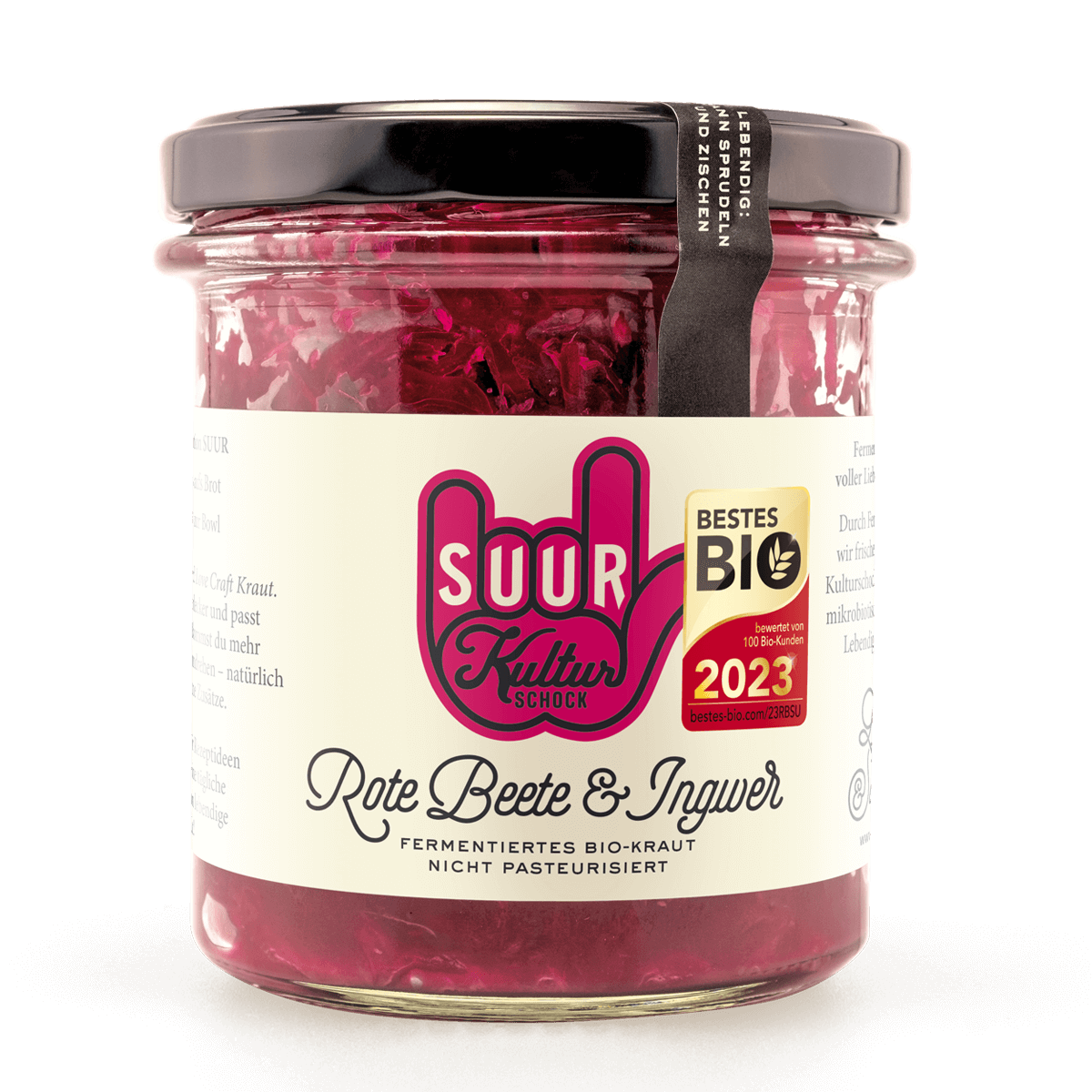 White cabbage*, beetroot* 32%, rock salt, ginger, fresh* 1.9%/ *from certified organic farming