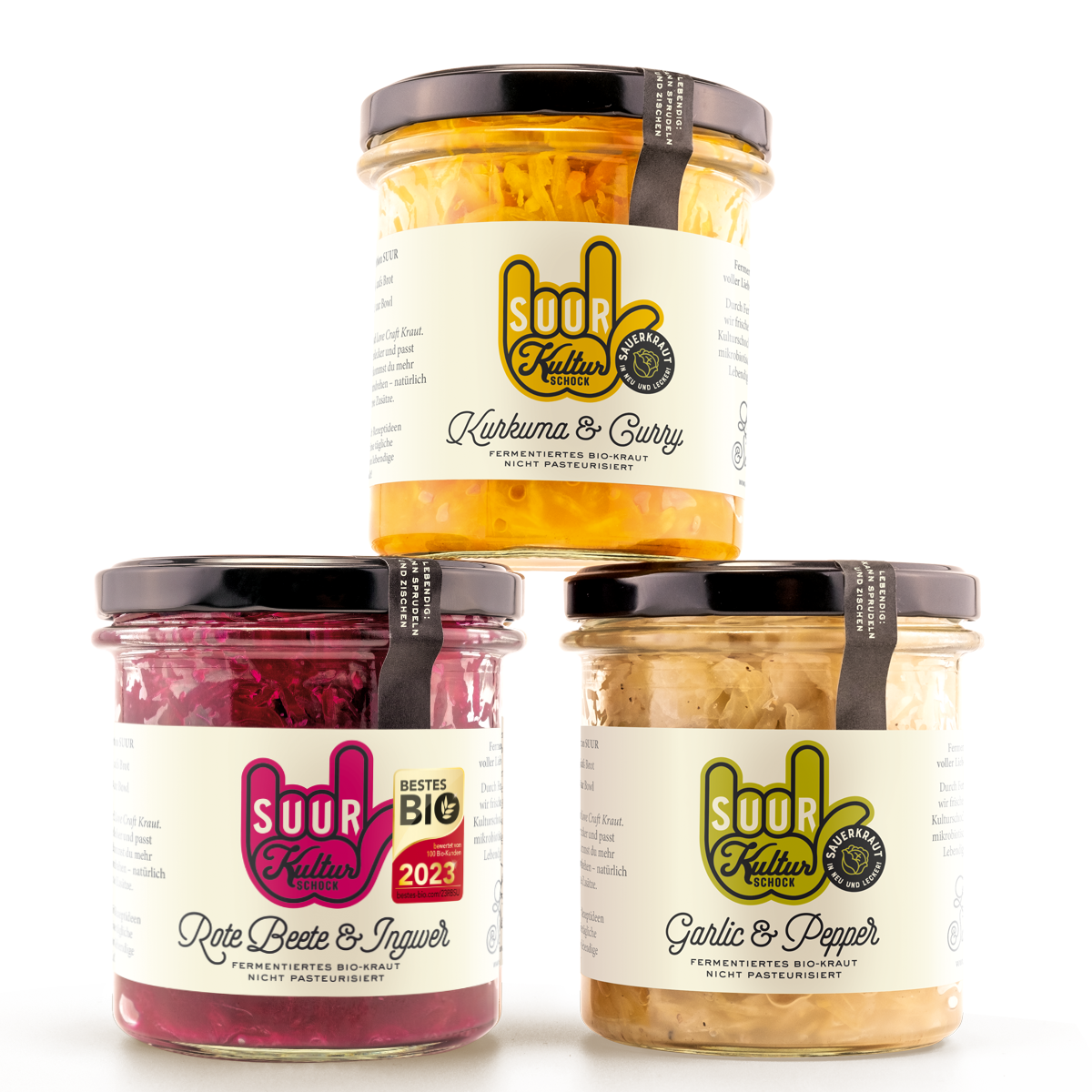 Man hört es schon am Namen: SUUR ist plattdeutsch und heißt „sauer“ – so wie unsere leckeren Gemüsefermente eben sind. Die Hand in unserem Logo zeigt die Gebärde für „I love you“ – damit sagen wir, wofür unser Herz schlägt: Beste lebendige Krauts & Kimchi!